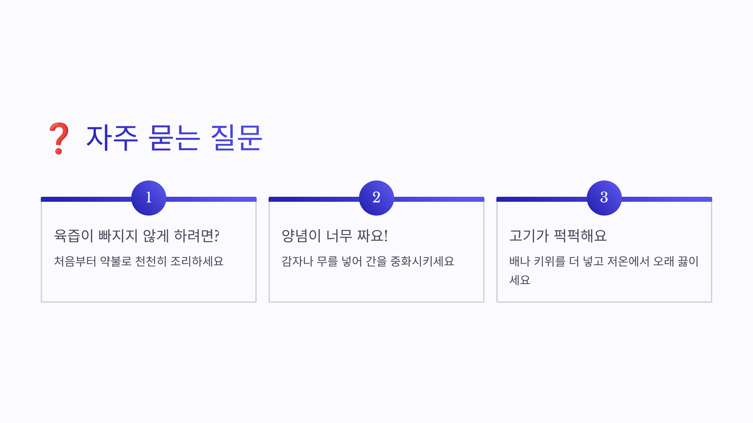 | 1. 센 불 | 처음 10분, 끓기 시작하면 거품 제거 |