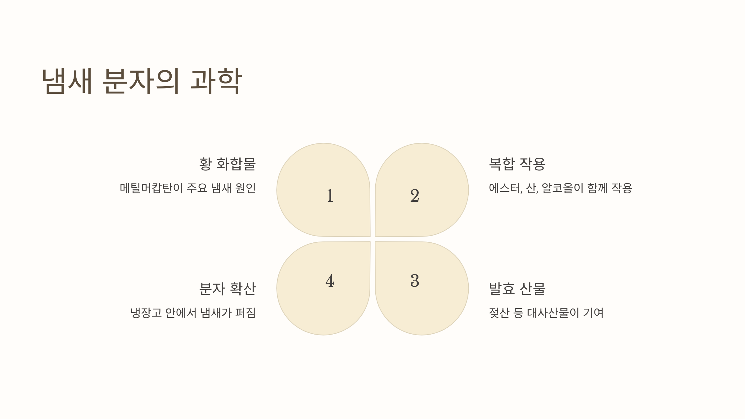 김치 냄새를 없애려면 먼저 냄새의 ‘구조’를 이해해야 해요. 냄새는 공기 중의 휘발성 분자가 코의 수용체에 도달하면서 발생하는데, 김치의 경우 이 분자들이 유난히 강하게 흡착돼요.