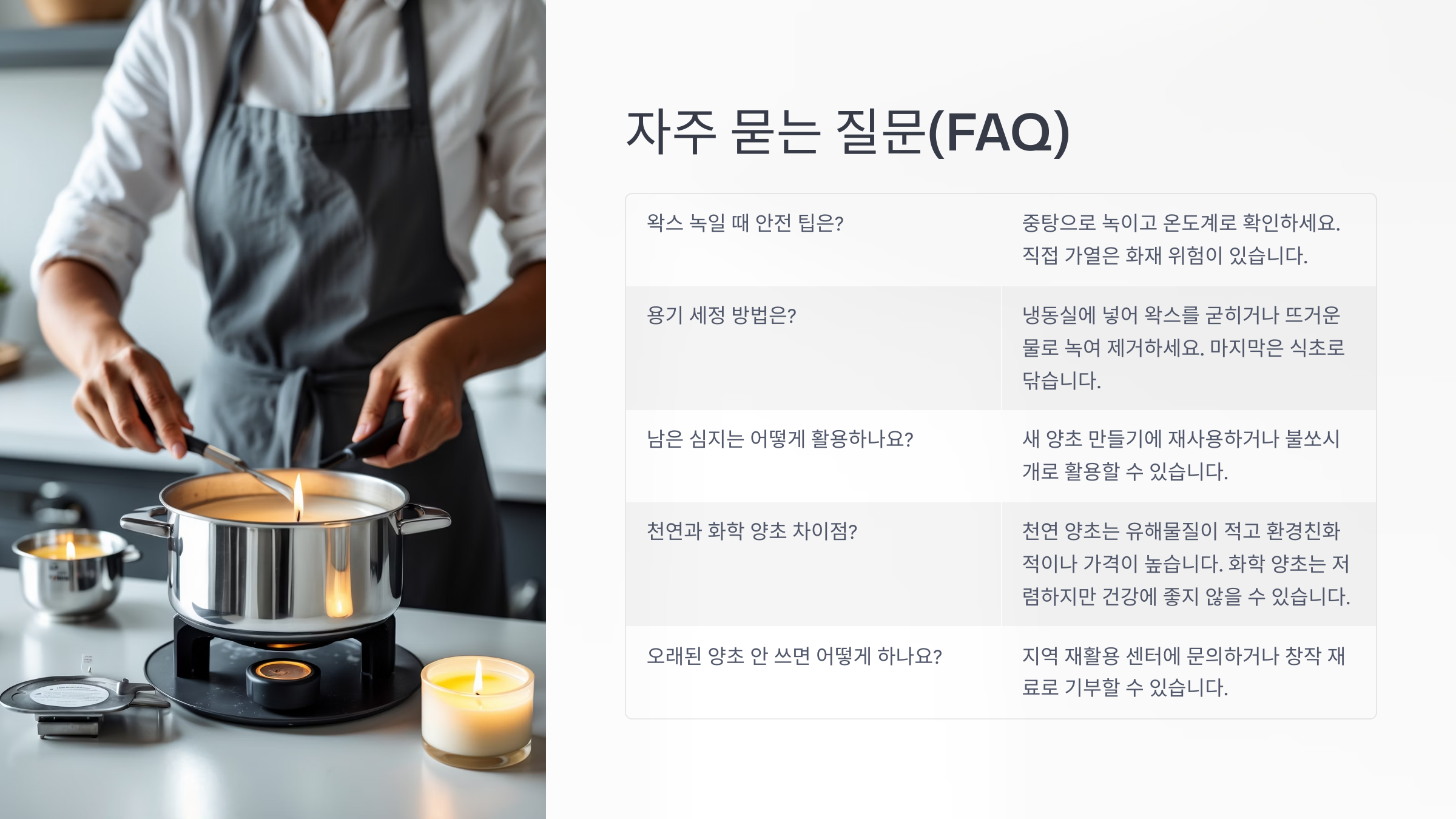 친환경 DIY는 어렵지 않아요. 작은 실천이 모여 지속 가능한 생활을 만들 수 있어요. 지구를 위한 양초 재활용, 지금부터 시작해 보세요! 🌱
