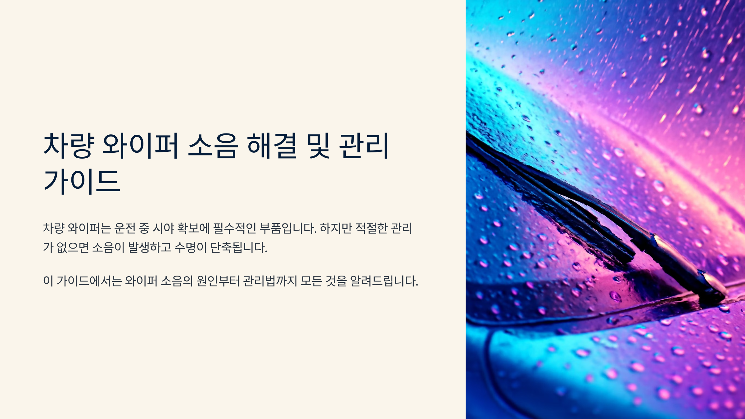 와이퍼뿐만 아니라 유리까지 함께 관리해야 진짜 소음 없는 주행이 가능해요! 🚙