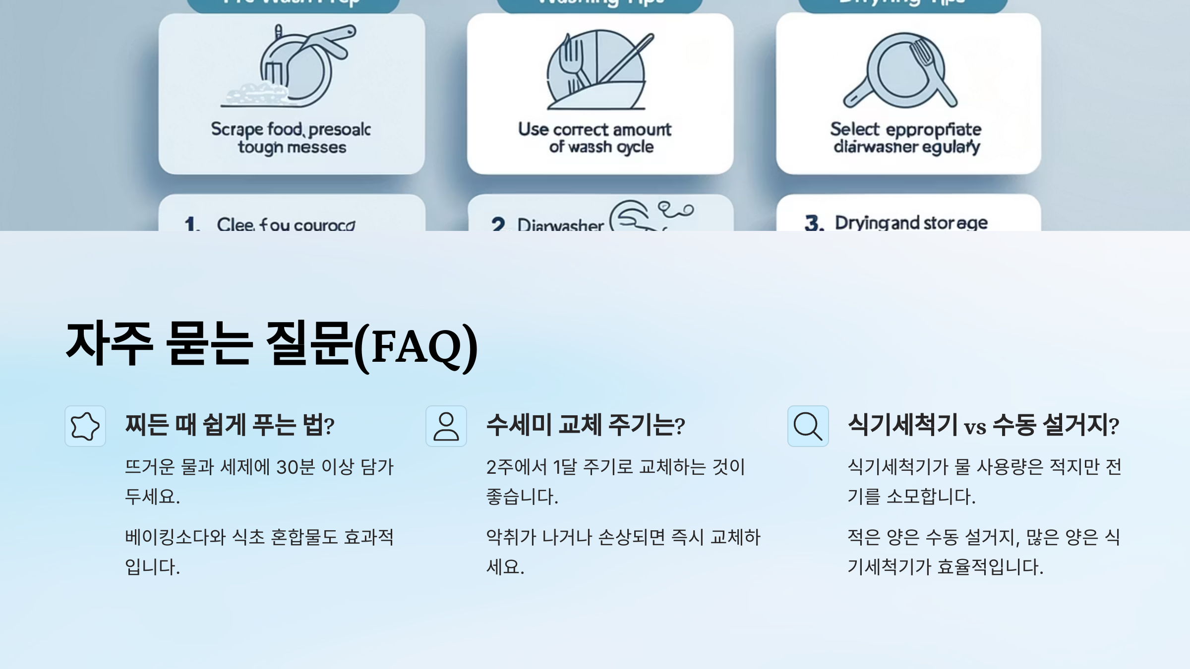 | 온수 사용 | 기름기 제거와 빠른 세척 |