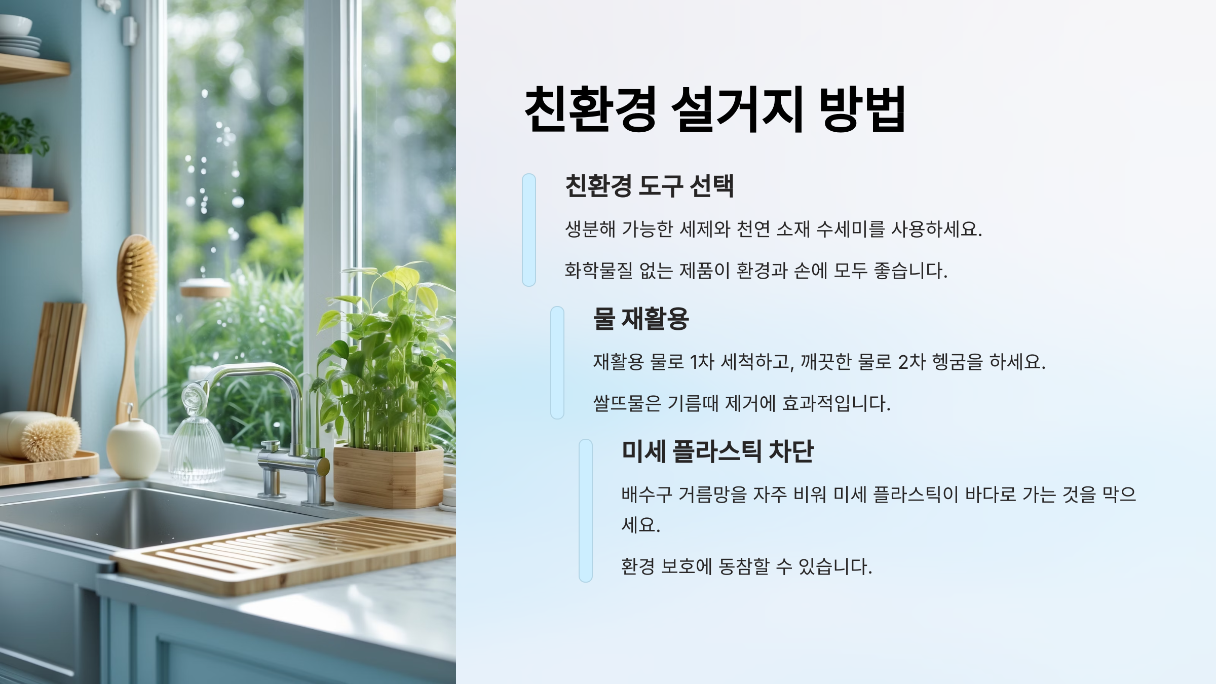 | 친환경 세제 사용 | 세제 잔여물 감소와 건강한 주방 |