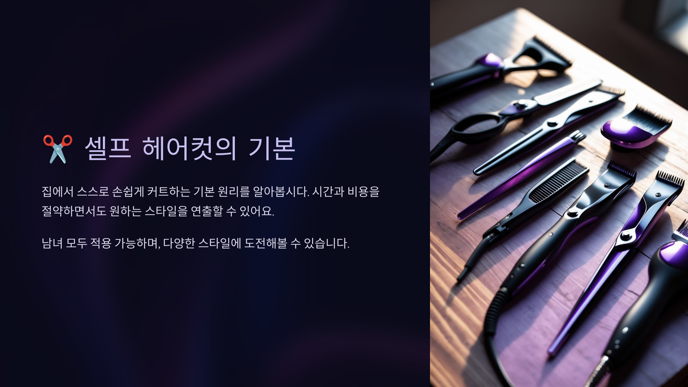 셀프컷을 더 즐겁고 자신 있게 할 수 있는 비결은 ‘스타일별 팁’이에요. 원하는 스타일을 정확히 알고 그에 맞게 잘라야 결과가 예쁘게 나오거든요! 전문가들은 “스타일별로 필요한 기술과 도구가 다르다”고 강조해요. 여기서 그 비결을 소개할게요. 😉