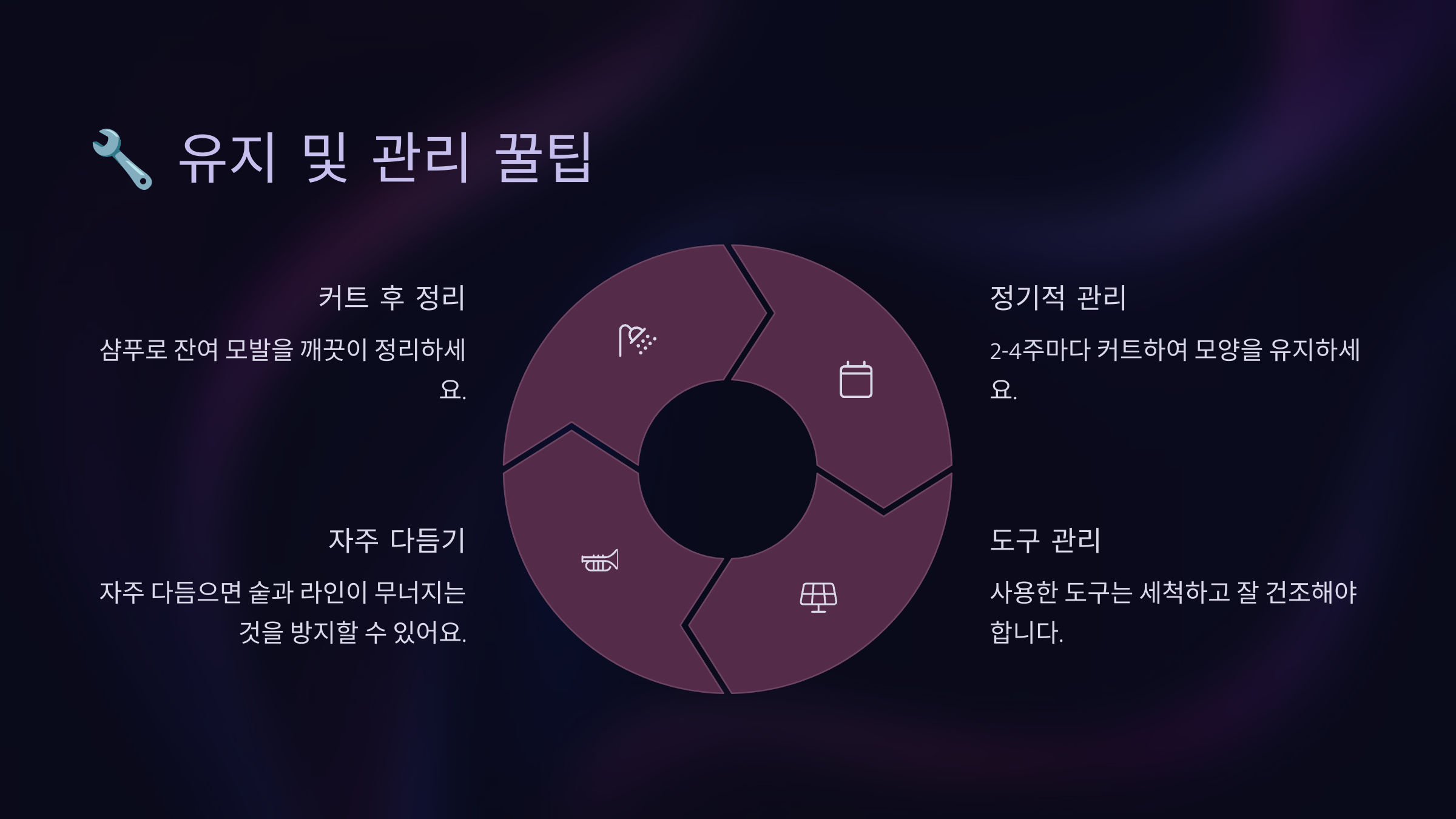 셀프커트를 멋지게 완성했다면, 이제는 도구를 잘 관리하는 것이 중요해요. 전문가들은 “도구 관리가 스타일 완성도의 반”이라고 강조해요. 올바른 관리로 도구의 수명을 늘리고, 매번 셀프컷을 더 멋지게 할 수 있답니다. 😉