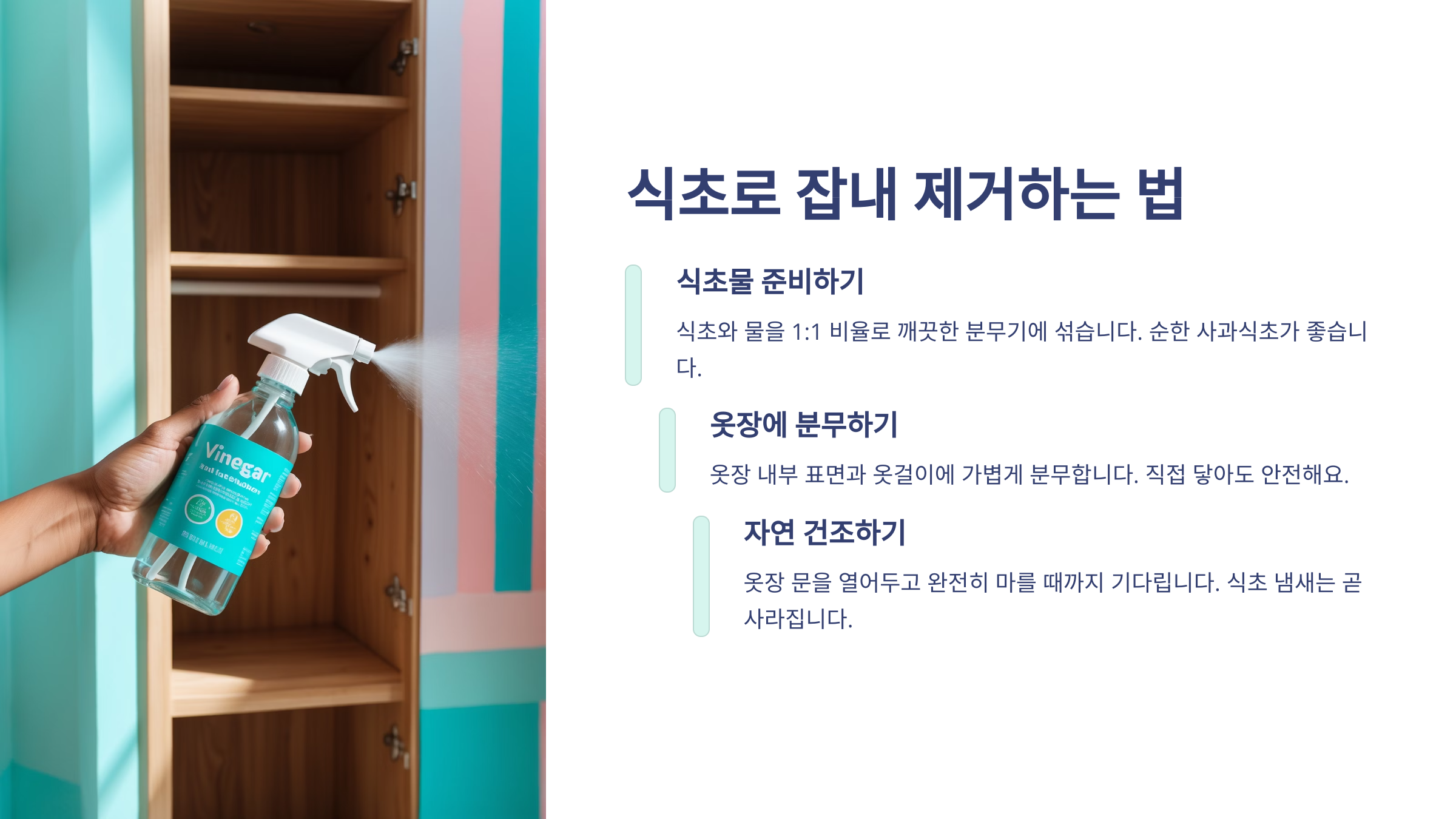식초는 저렴하고 구하기 쉬운 재료인 만큼 꾸준히 활용하면 확실히 쾌적한 옷장을 유지할 수 있어요.