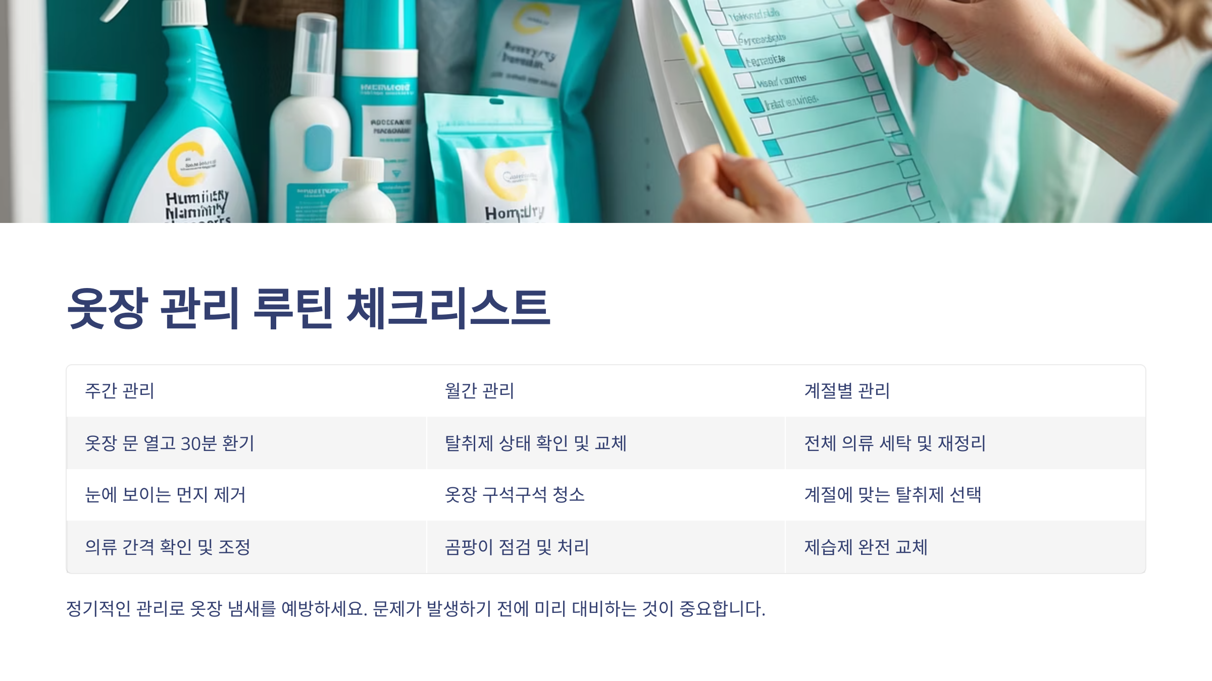 지속적인 냄새 제거를 위해서는 정기적인 옷장 관리가 꼭 필요해요. 아무리 좋은 천연 재료를 사용해도 기본 관리가 되지 않으면 효과가 오래가지 않거든요.