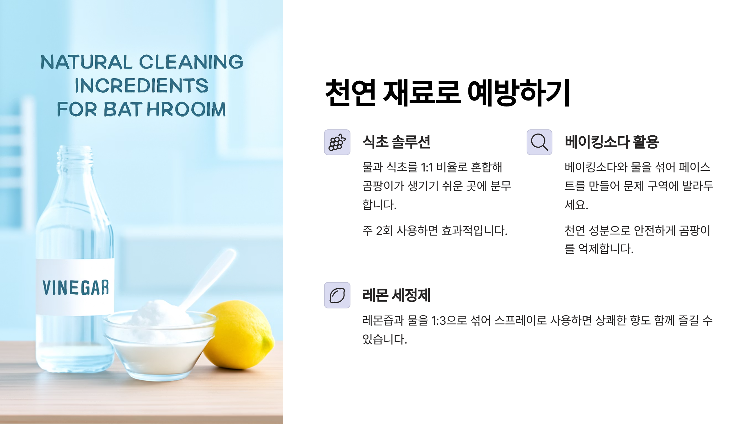 화학제품이 꺼려질 땐 천연 재료로도 충분히 곰팡이를 예방할 수 있어요. 집에 있는 재료만으로도 실천 가능하니 참고해 보세요.