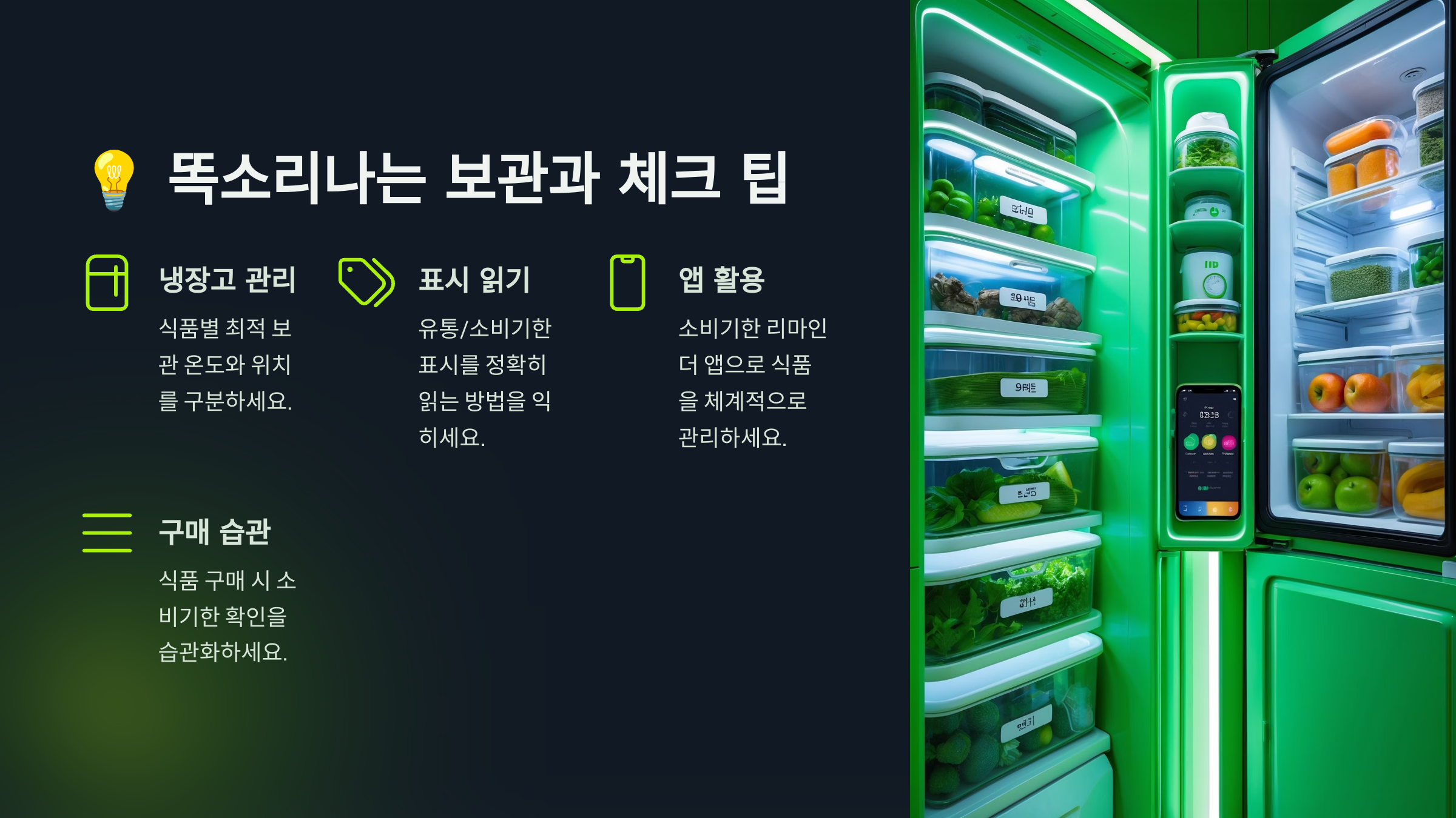이렇게 알아두면 냉장고를 한결 효율적으로 사용할 수 있어요. 불필요한 폐기도 줄이고, 알뜰한 소비가 가능해지죠. 💪