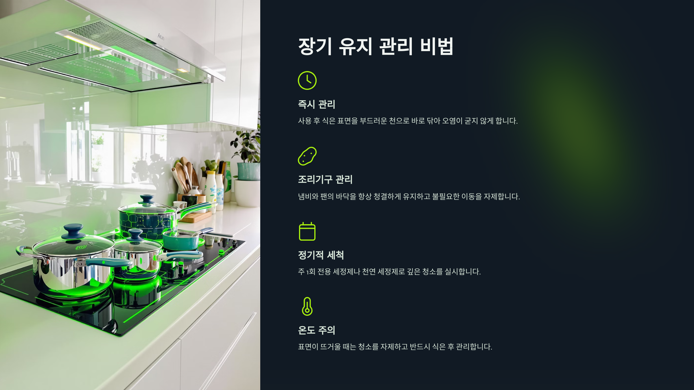 전기레인지 유리 상판을 오래오래 새것처럼 유지하려면, 매일 하는 청소도 중요하지만 꾸준한 관리 루틴이 더 중요해요. 습관처럼 반복되는 관리가 결국 광택을 좌우하거든요. 🌟