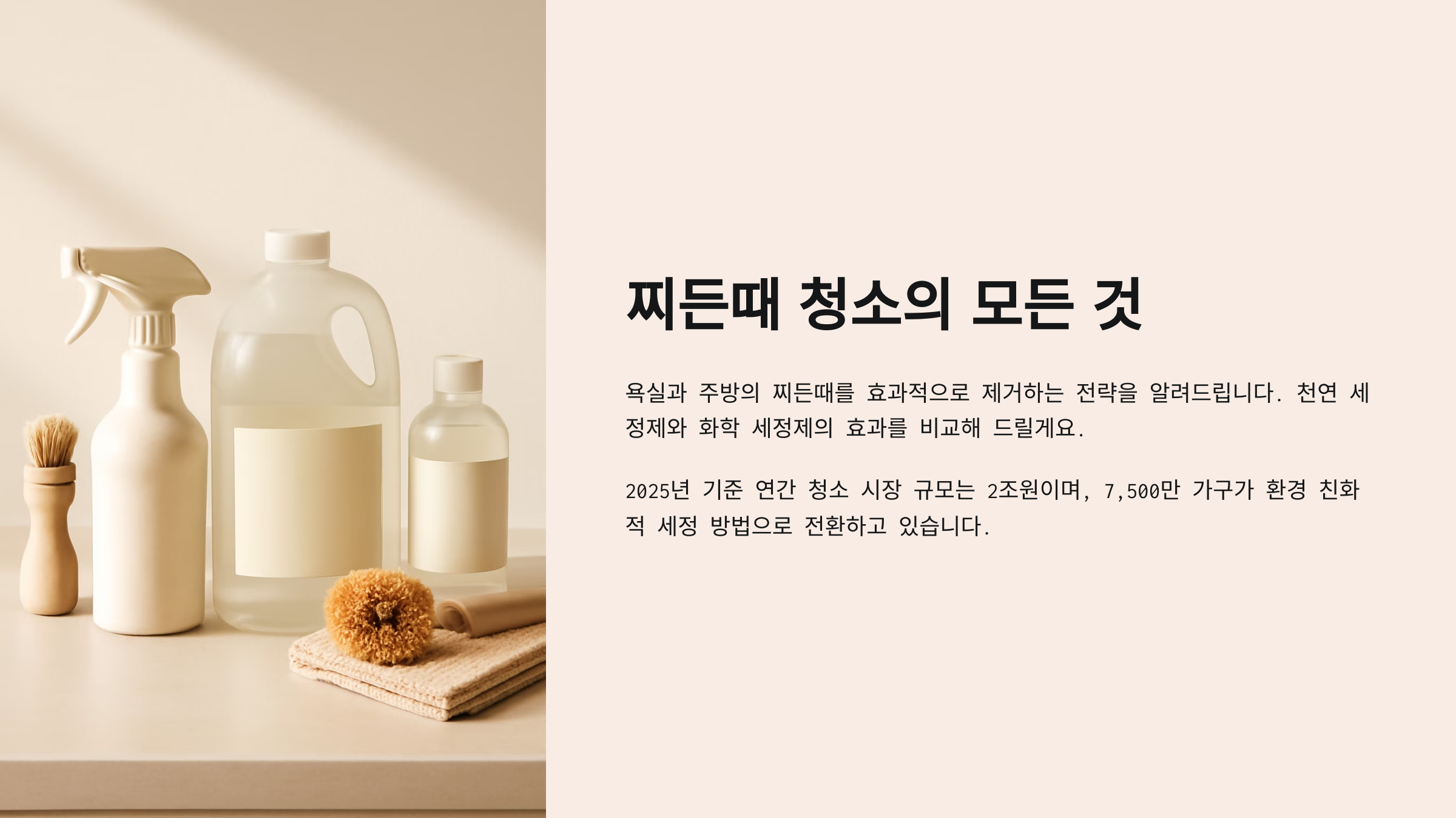 시중에 판매되는 찌든때 제거 세제는 대부분 강한 알칼리성이나 계면활성제가 들어 있어요. 즉시 효과는 있지만 환경과 피부에는 부담이 클 수 있어요.