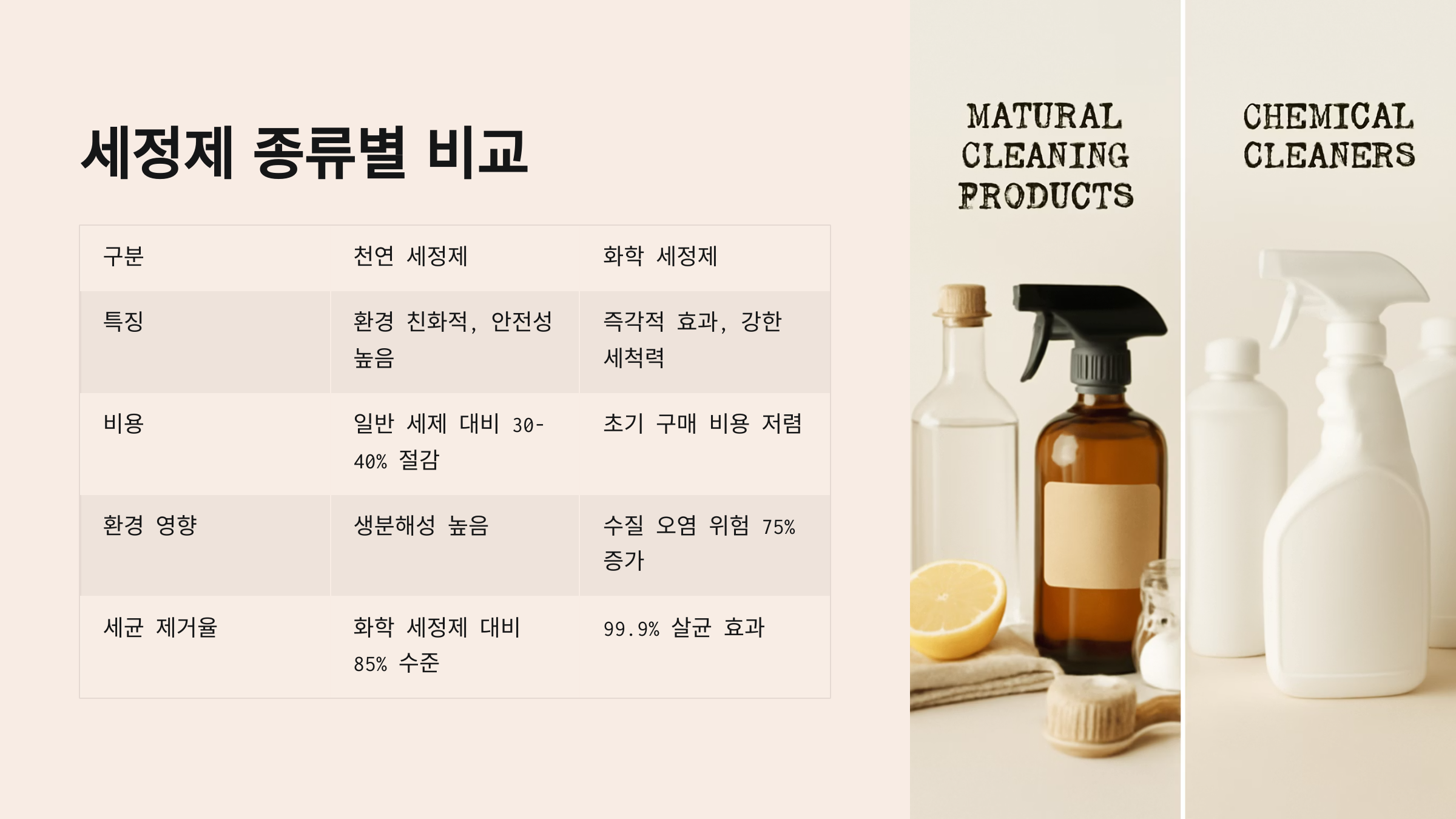 | 항목 | 베이킹소다 조합 | 일반 시중 세제 |