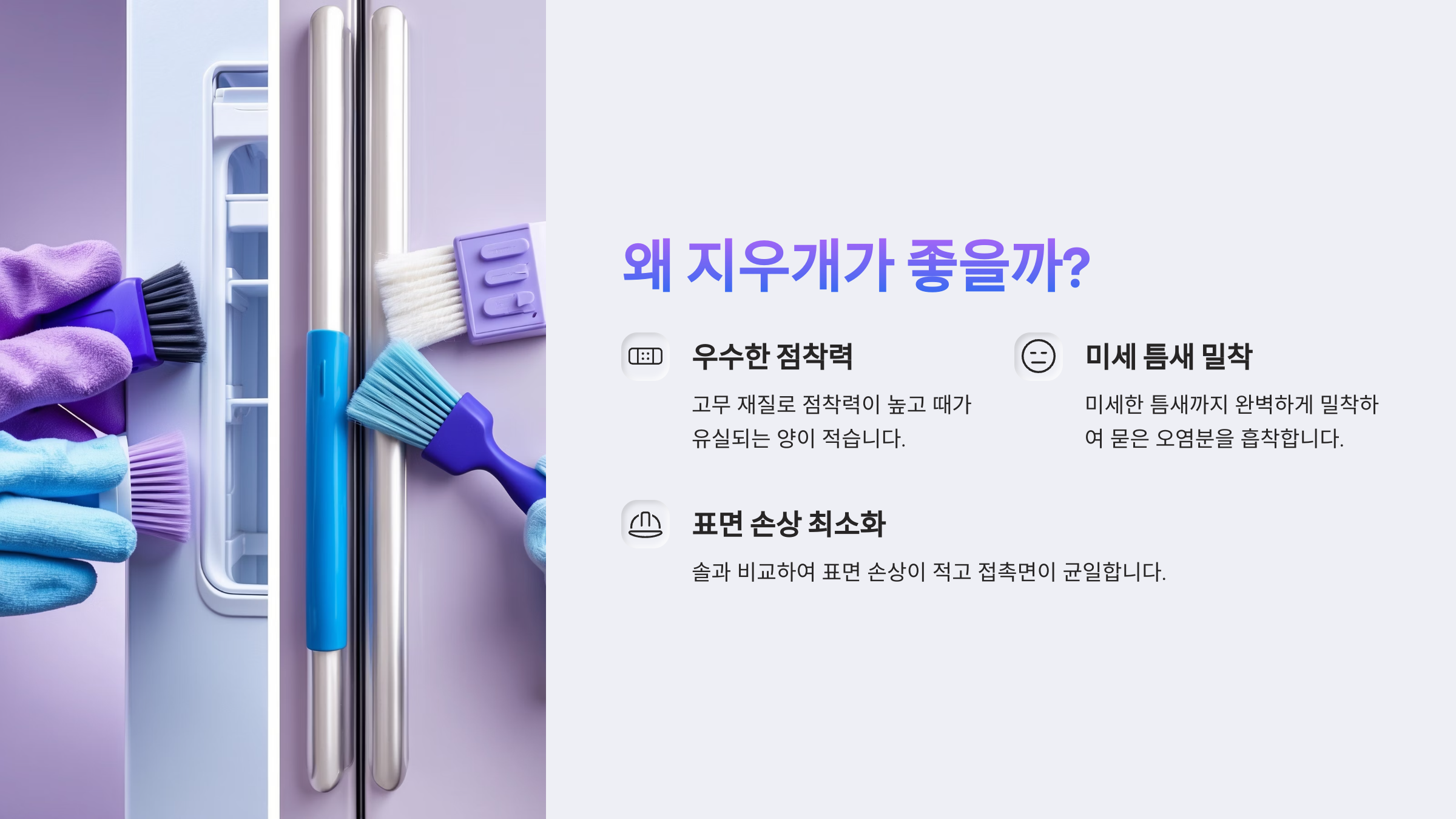 Q1. 지우개로 청소하면 냉장고 문틈이 손상되진 않을까요?
