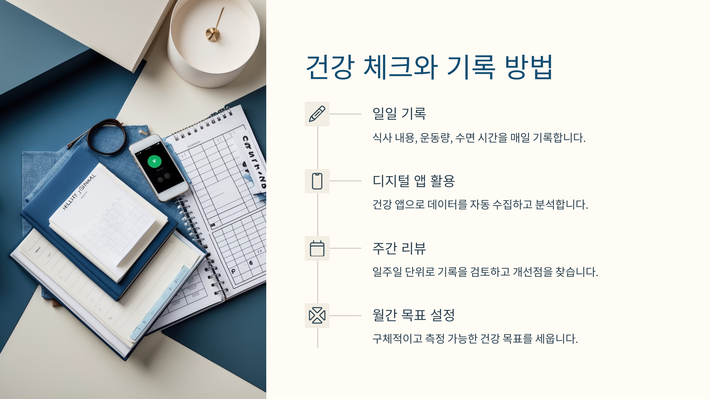 | 기록으로 개선 | 꾸준한 관찰과 수정 | 건강 체크 메모 |