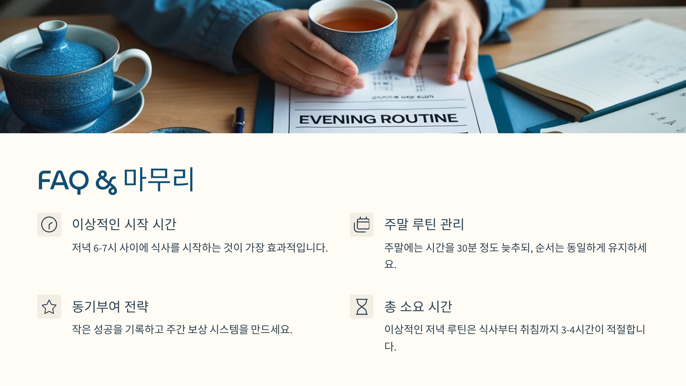 달인들의 저녁 루틴은 완벽해서가 아니라, 매일 조금씩 ‘내 것’으로 만드는 과정이었어요. 나에게 맞는 방식으로 유지하고, 조금씩 더 좋은 방법을 찾아가는 것, 이게 진짜 달인의 비결이에요! 🌟
