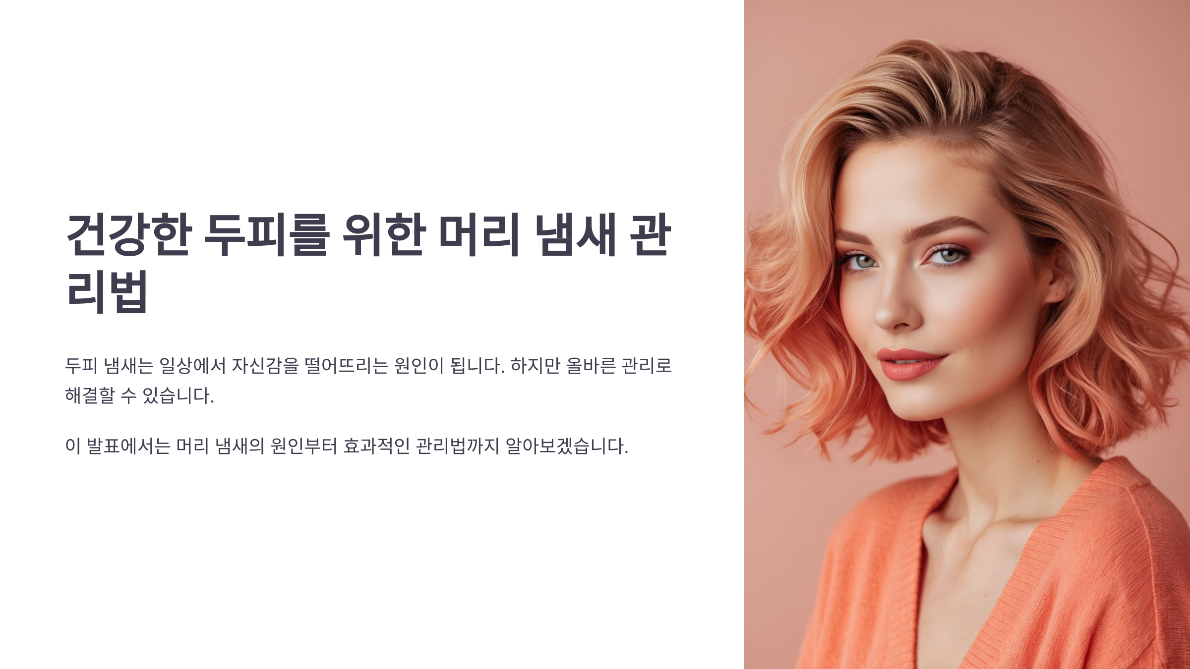 건강한 머리, 냄새 없는 두피는 단순히 제품 하나로 완성되지 않아요. 몸 안팎 모두의 관리가 함께 이뤄질 때 진짜 향기 나는 사람이 되는 거랍니다. 🌱