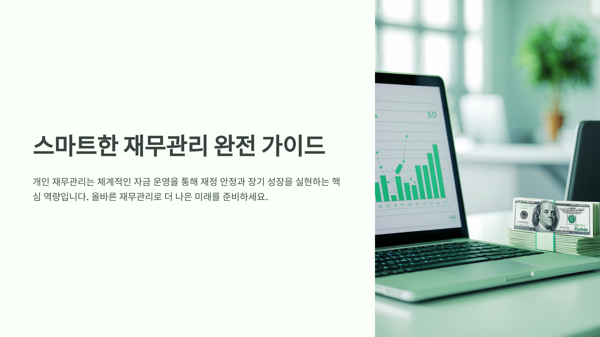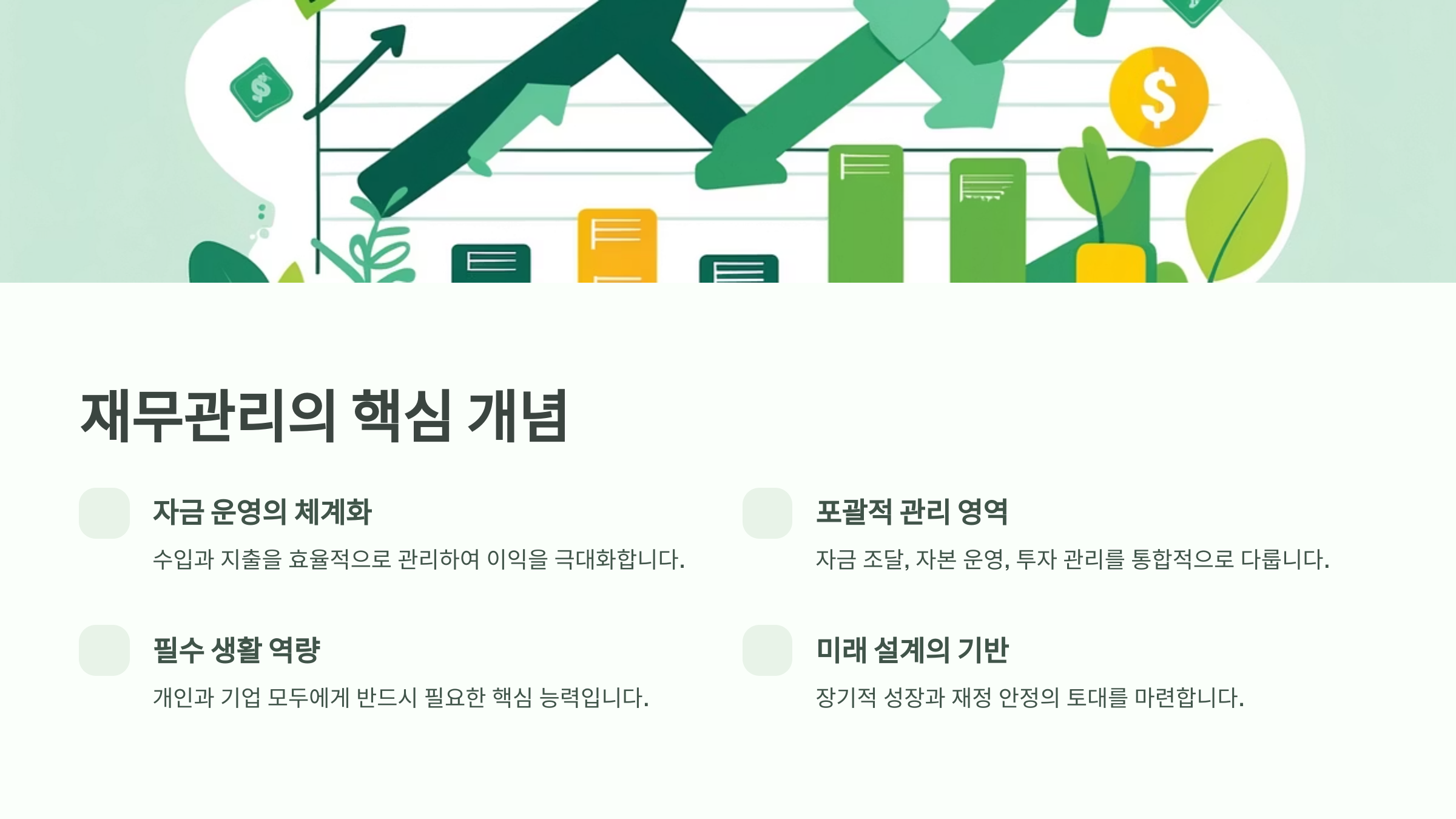재무관리는 단순히 돈을 아끼는 개념이 아니에요. 내 소득과 지출을 분석하고, 목표에 맞는 자산을 구축해나가는 일종의 ‘인생 설계 도구’랍니다.