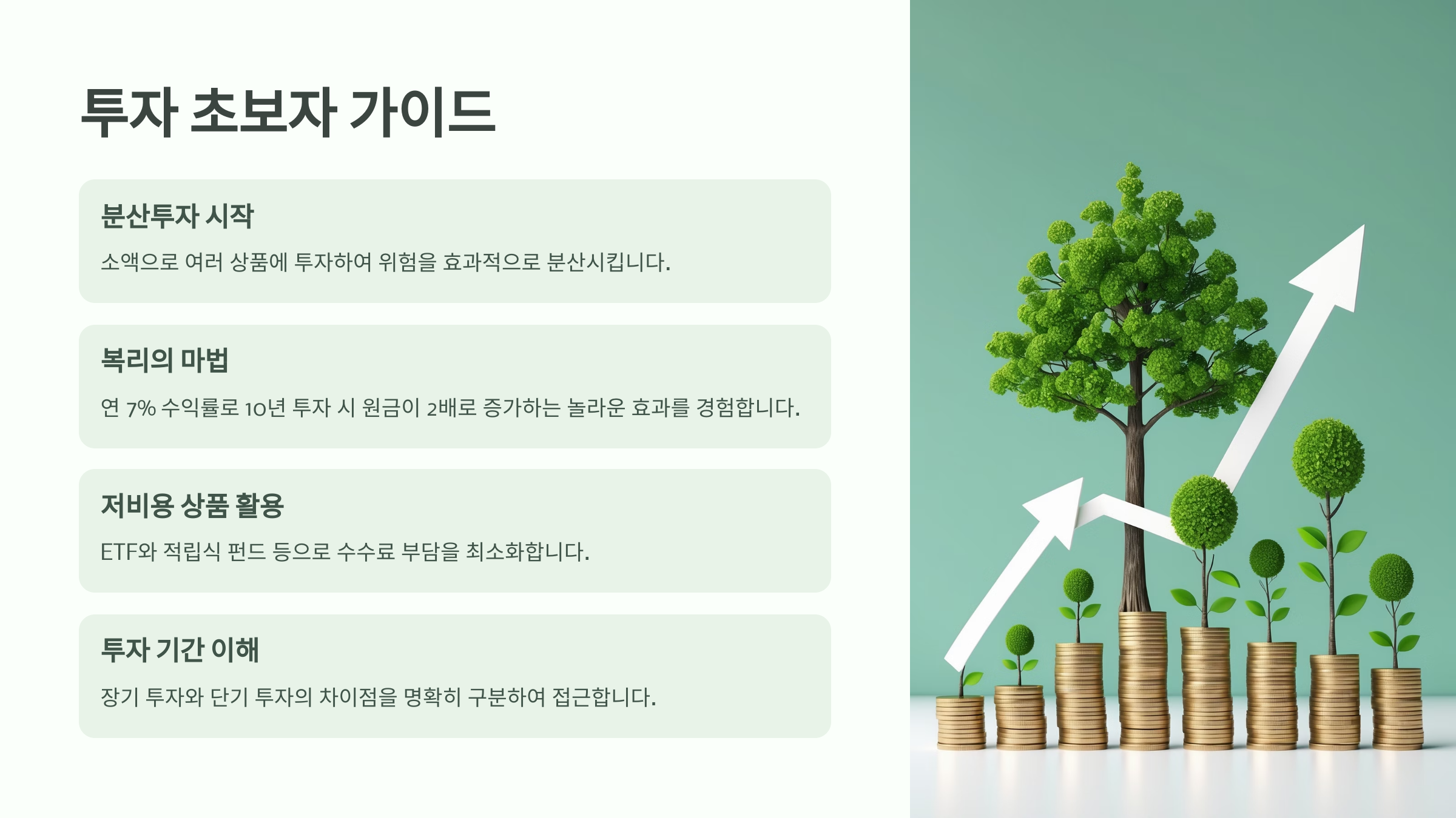 2025년 기준, 가장 많이 시작하는 초보자 투자 방식은 ‘ETF’와 ‘TDF(타깃데이트펀드)’예요. 안정성과 분산이 탁월하거든요.