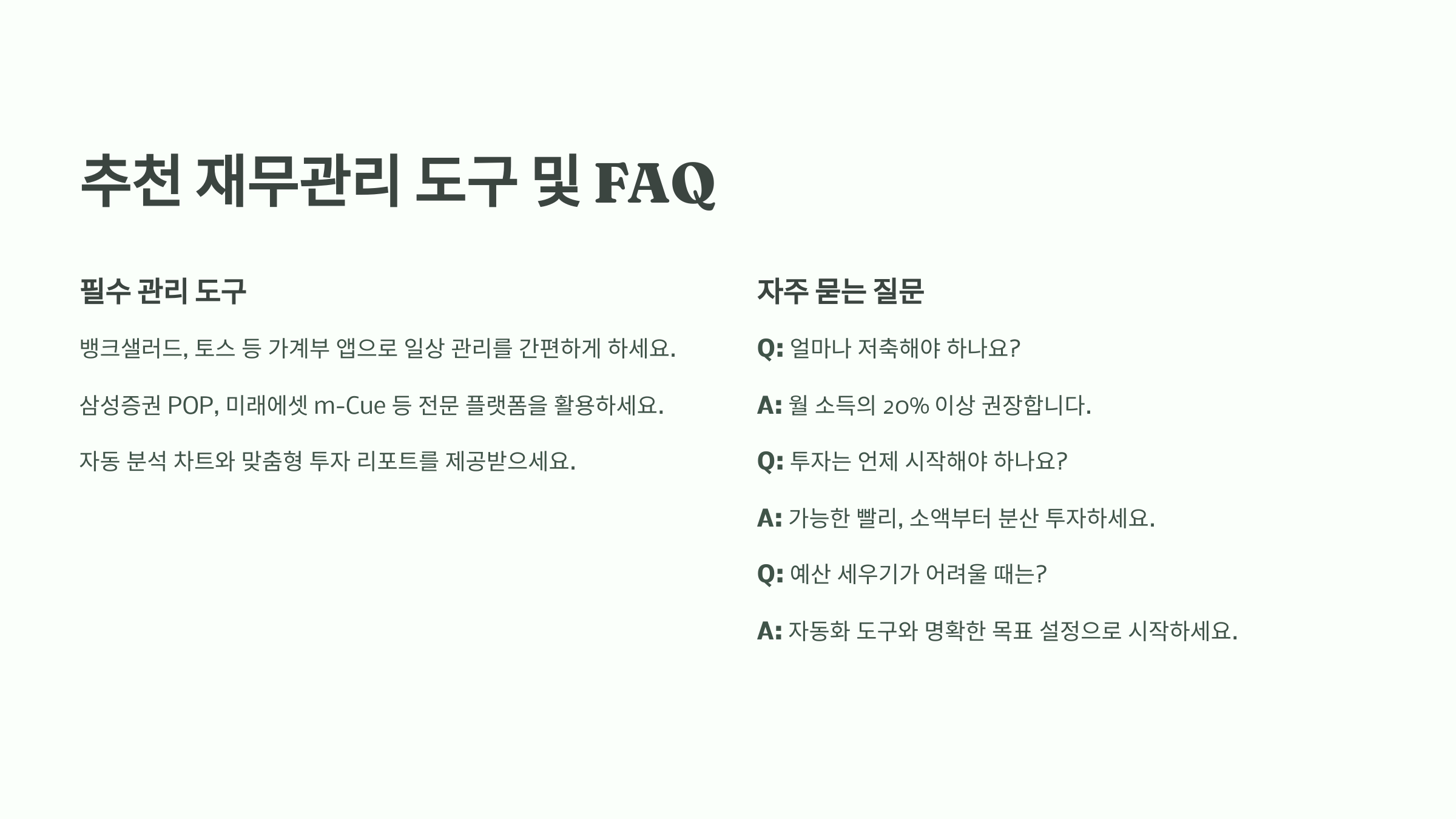 가장 좋은 재무관리 툴은 결국 ‘매일 사용할 수 있는 도구’라는 사실을 기억해요! 🌟
