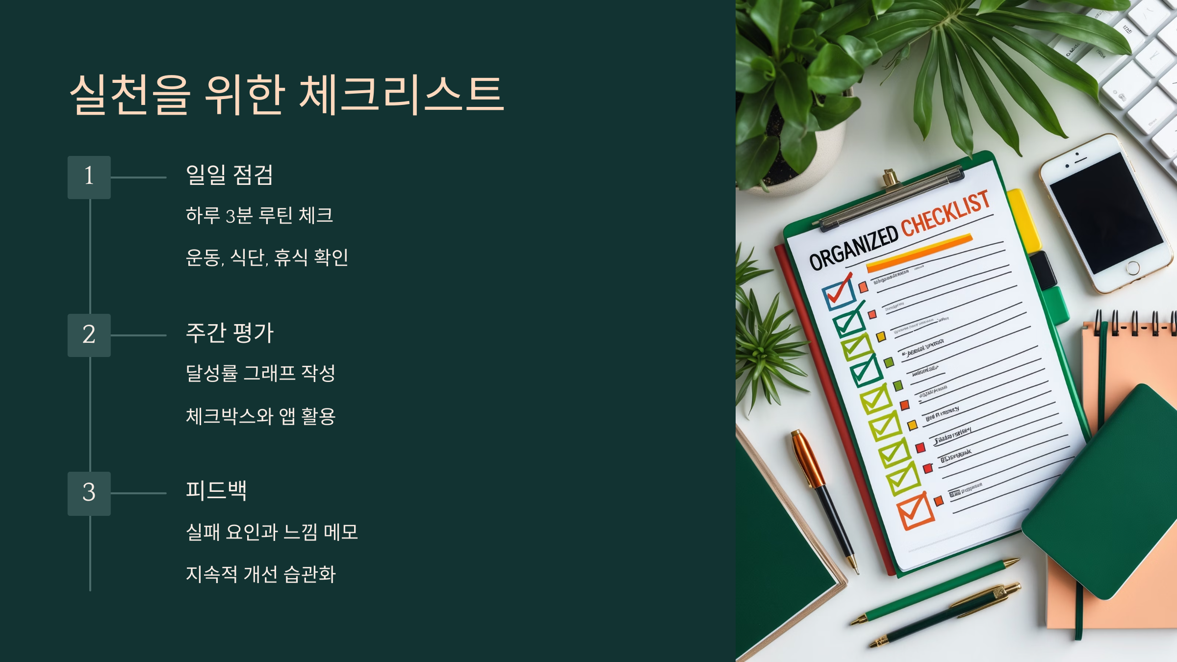 내가 생각했을 때, 가장 중요한 건 꾸준함이에요. 아무리 완벽한 계획이라도 일주일 안에 포기하면 의미가 없어요. 이 루틴은 누구나 1일차부터 실천 가능하도록 구성돼 있어요.