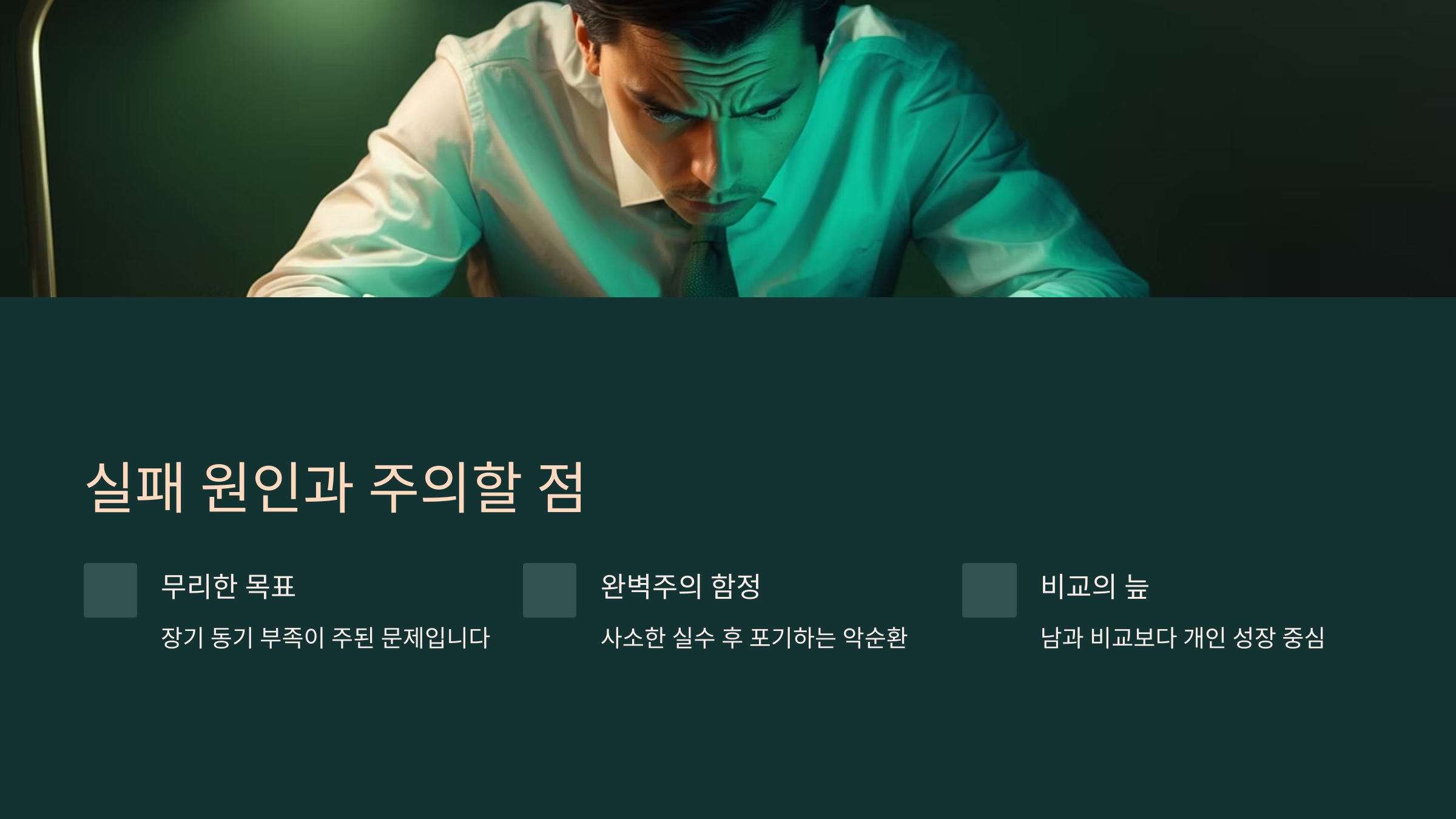 결국 실패는 전략의 문제보단 ‘마음가짐’의 문제일 수 있어요. 내 속도를 인정하고, 하루 한 걸음만 내딛어도 달인은 될 수 있어요.