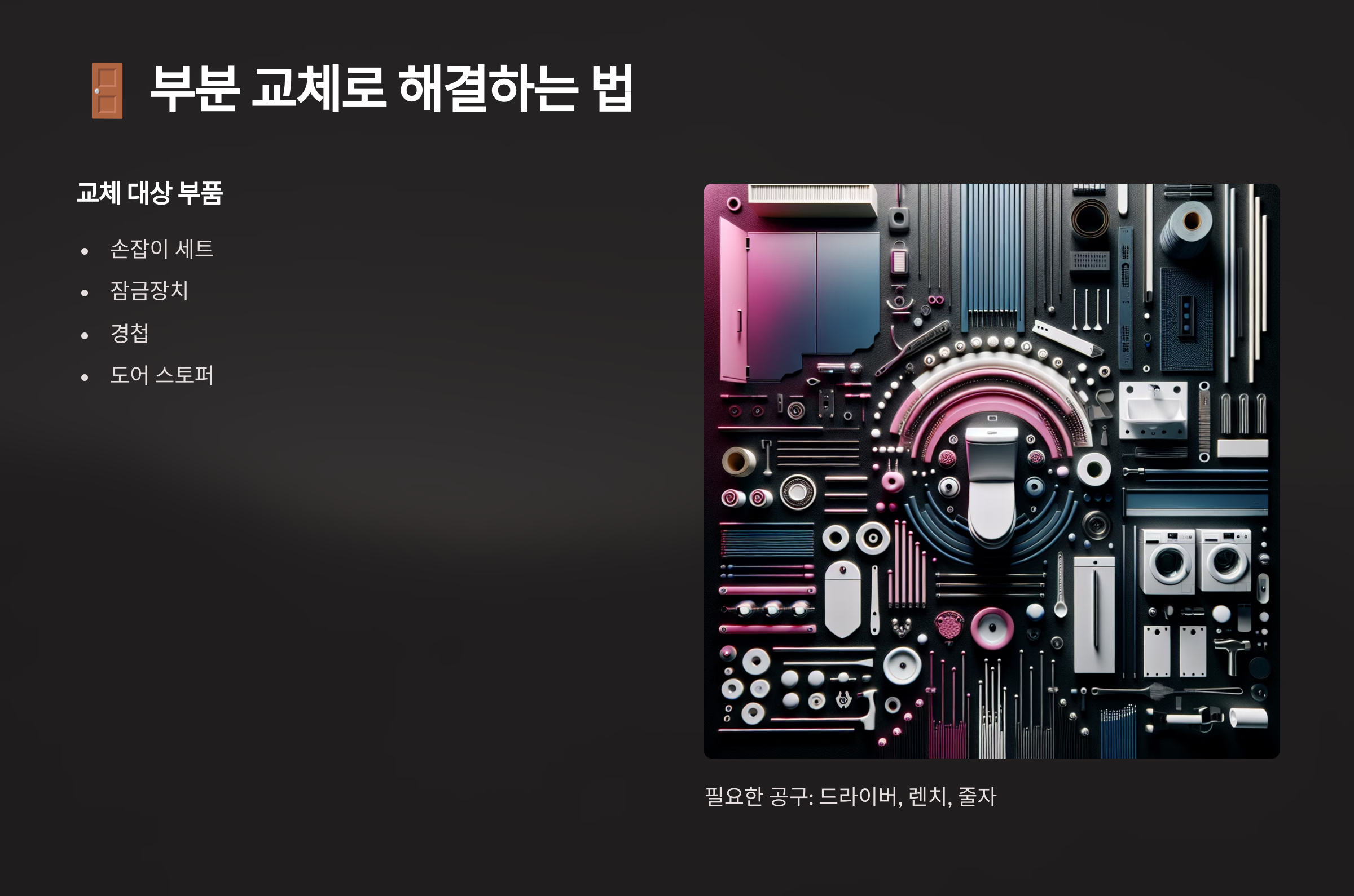 🛠️ 꼭 문을 새로 사지 않아도, 고장 부위만 고치면 새것처럼 사용할 수 있어요!